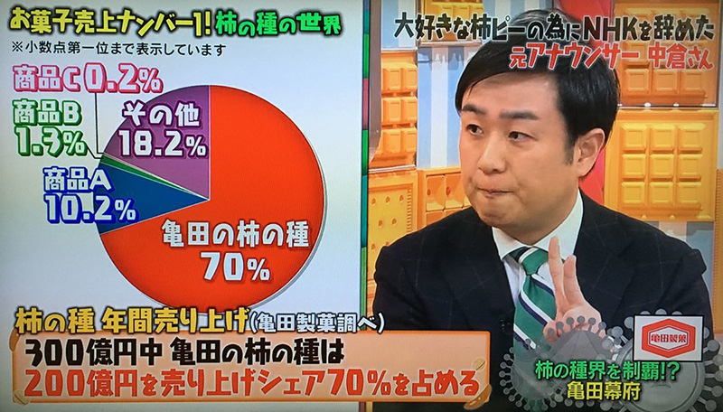 柿ピー研究家としてテレビやラジオなどのメディアでも活躍。柿の種の長さや幅、香り、食感、味わい、原材料、製造メーカーなどを事細かく分析し、独自目線で研究を続けている。